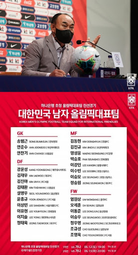 올림픽 예선 전 마지막 친선 평가전 을 치루게 됩니다. 2021년 6월 30일 (한국시간) 올림픽 축구 대표팀 김학범 감독은 7월 21일부터 펼쳐지는 도쿄올림픽 축구 대표팀 최종 18인 명단을 발표했습니다. 대표팀 소집 명단 중 원두재, 이동준, 엄원상, 윤종규, 조영욱은 올림픽 대표팀의 주축이지만 벤투 감독의 부름을 받았습니다. 이번 30일에 와일드카드를 포함한 18명 도쿄 올림픽 최종 명단이 공개됐다.
